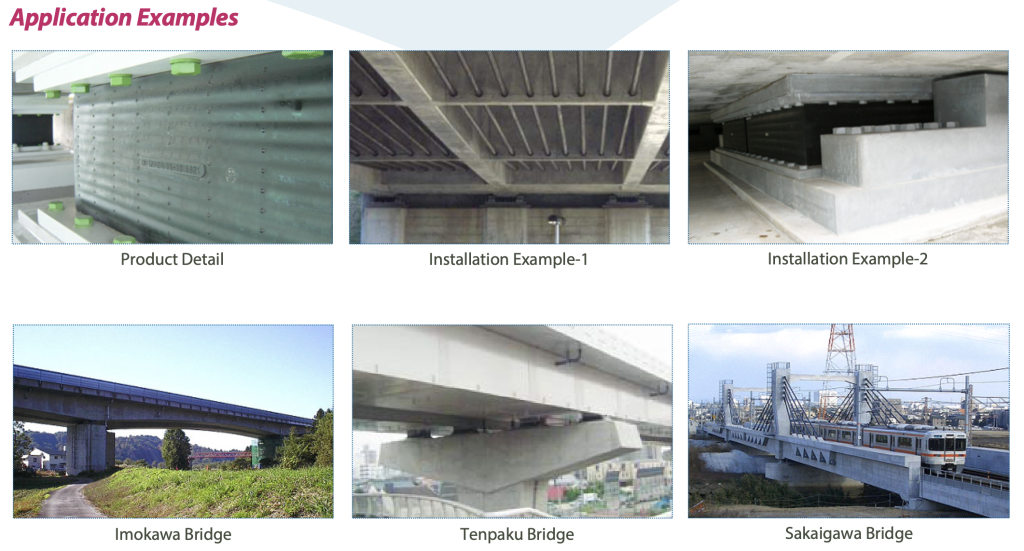 High-damping rubber bearings for seismic energy absorption.