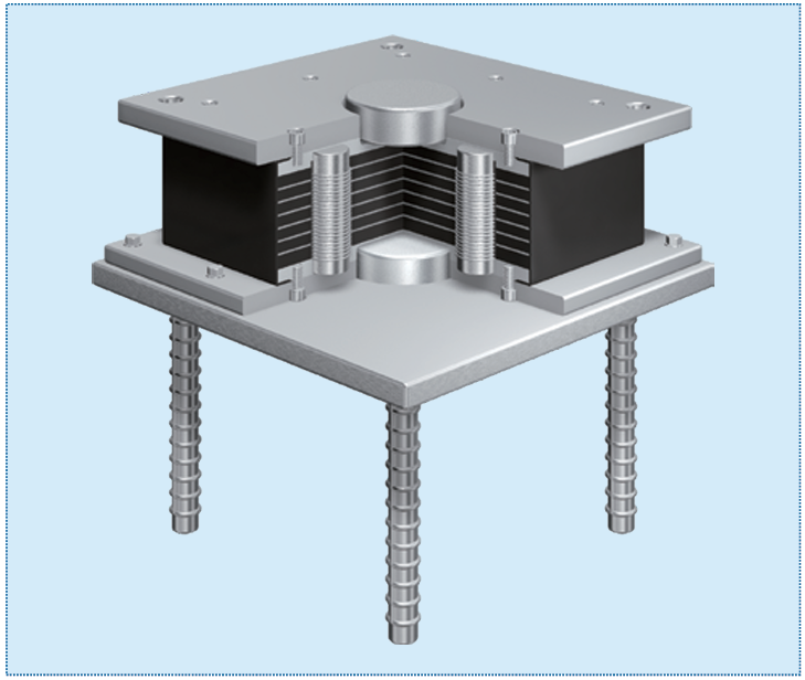 SPR Spring Conned Pb Rubber Bearings combine the benefits of lead-rubber damping and spring isolation. Used in seismic applications, they reduce stress on building foundations by absorbing shock and vibration, enhancing structure safety during earthquakes.